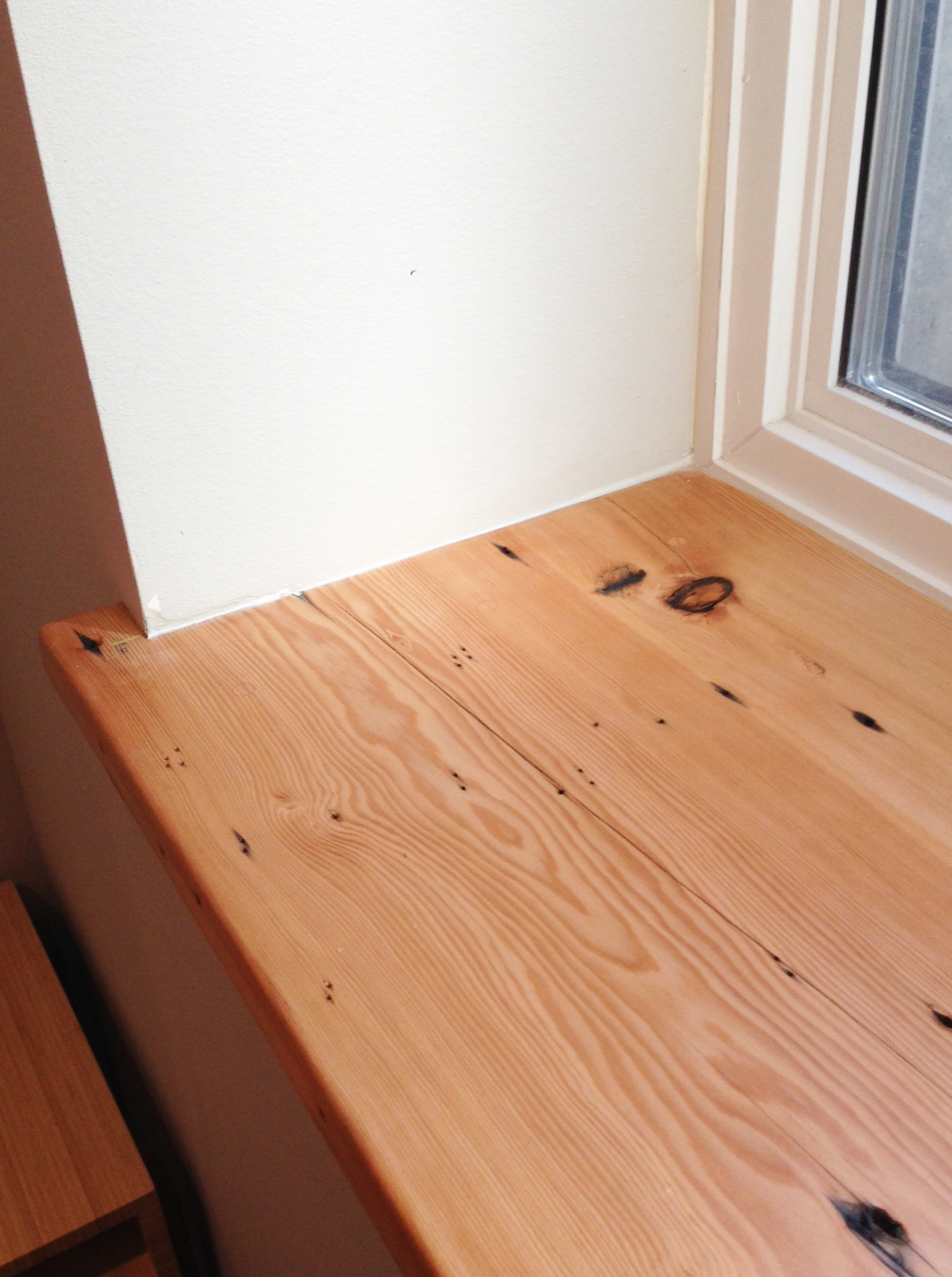 The wood trim used in the project was salvaged from the deconstructed wood structure in the existing home. The stair railing posts were milled down from the headers (larger wood pieces over door openings) and the window trim was made from the floor joists that were removed to create a new stair opening. You can see the marks of the nails that were removed.