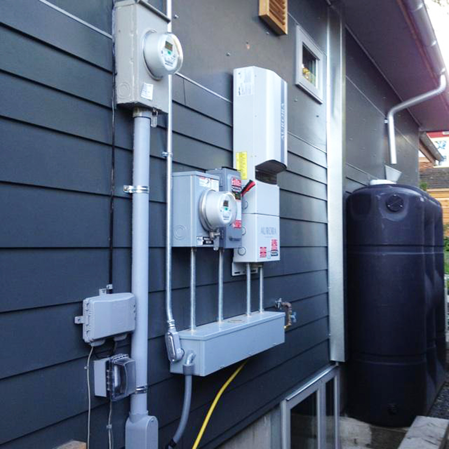 The north side of the house has much of the technical infrastructure for the home. Photo by Becky Chan.
