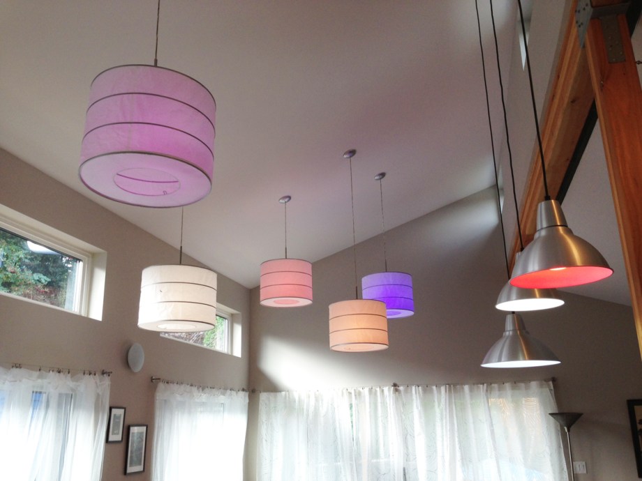 LED lightbulbs can be controlled from a smart phone, and can be set to a variety of colors and intensities. Photo by Parie Hines.