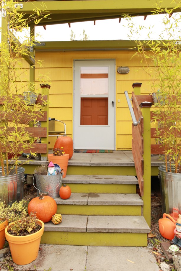 Stairs up to the front door. Concrete pavers are an inexpensive and durable stair and porch surface.
