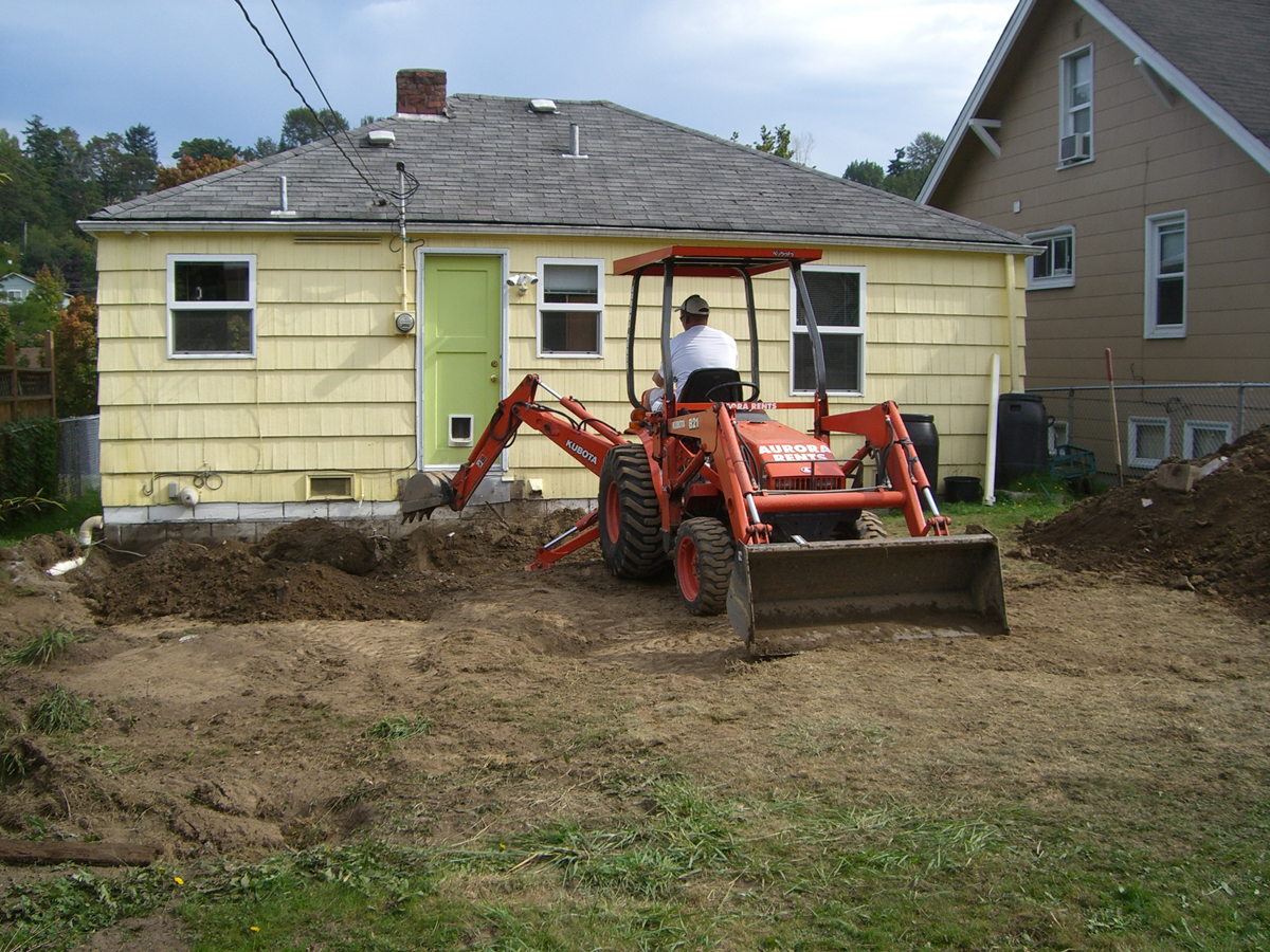 While the new front porch is a light-handed approach to changing the front of the house, the two story addition in the back is a more dramatic change. (If you look closely you can see the corner of the existing house on the right side of the photo below.)