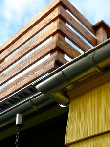 The design approach for LD Arch Design is to seek out the beauty and maximize the efficiency of that which is already there, keeping in mind that there are occasionally buildings that have come to the end of their useful life. I find it more challenging and rewarding to bring new life to an existing building, rather than tearing down the existing to build new. In the photo you can see original cedar siding juxtaposed with a new rain chain and rainwater harvesting system.