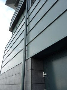 The Vikin Maritime Museum is on the waterfront and has some interesting cladding details. The metal siding is designed as overlapping planks, with a rolled edge at the bottom. This not only gives an elegant pattern to the façade, but also reduces the ability of water to wick upwards between the planks.