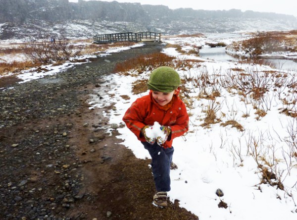 The landscape of Iceland is rugged – in fact, it is the world’s youngest landmass, formed entirely from volcanic activity. At Thingvellir, there are large rock formations that are moving apart from each other at the rate of an inch a year. An awe-inspiring glimpse at the volatility of the earth we live on. (But from the family vacation side of things, a snow shower there was also a great opportunity to make snowballs.)