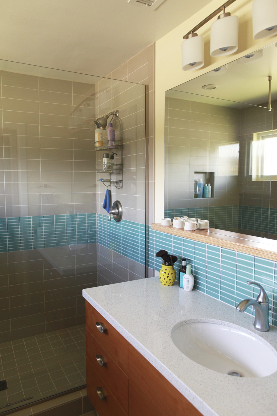 This 1950s era home was a well built home with great views, but was in need of significant updates. The scope of work included opening up walls to create an open floor plan at the upper level, with an updated kitchen and master suite, as well as cost-effective aesthetic updates at the stairs and lower level. Green building strategies included: